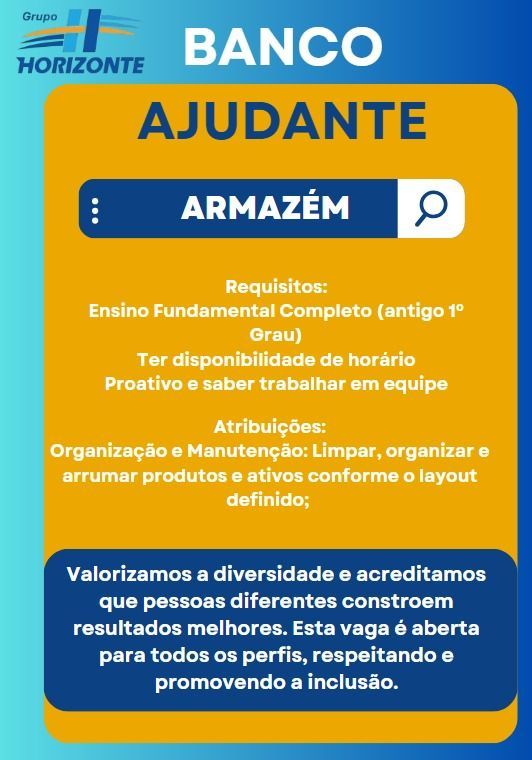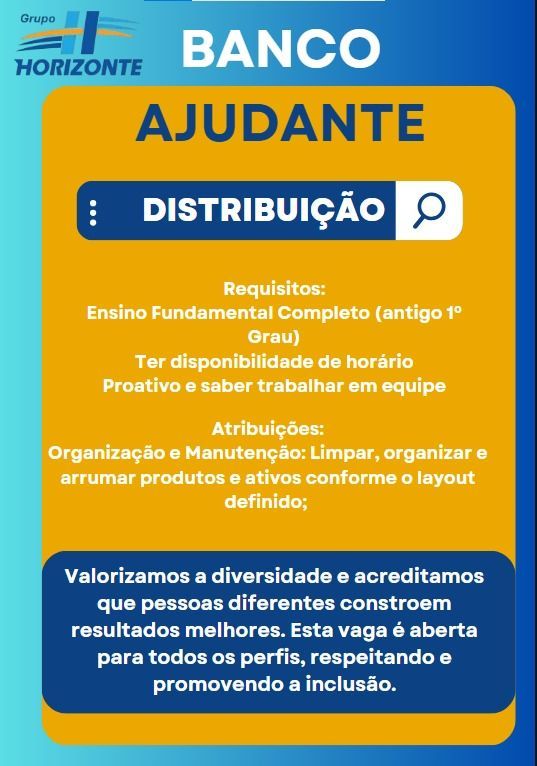 💙🧡Se você tem experiência ou interesse no mundo logístico essa é a sua chance! O Grupo Horizonte está ampliando nossa equipe e buscamos profissionais comprometidos, organizados e prontos para crescer com a gente. 🧡💙